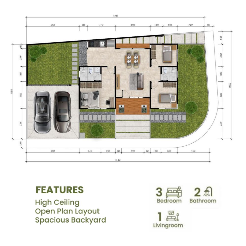 Lingkungan dengan konsep taman tropis bali dengan nuansa alami, rimbun, teduh, menenangkan, yang didukung dengan tanaman lokal bali serta tanaman eksotik yang menjadikan citarasa nuansa bali makin kental di lingkungan hunian Anda.